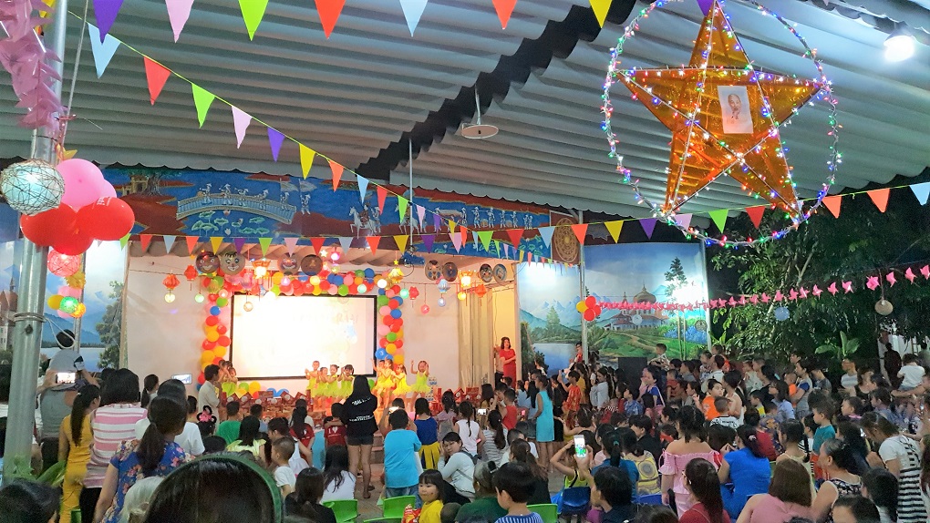 Tiết mục Rước đèn tháng 8 được biểu diễn với sự nhí nhảnh, hồn nhiên của các bé tại Khu chung cư