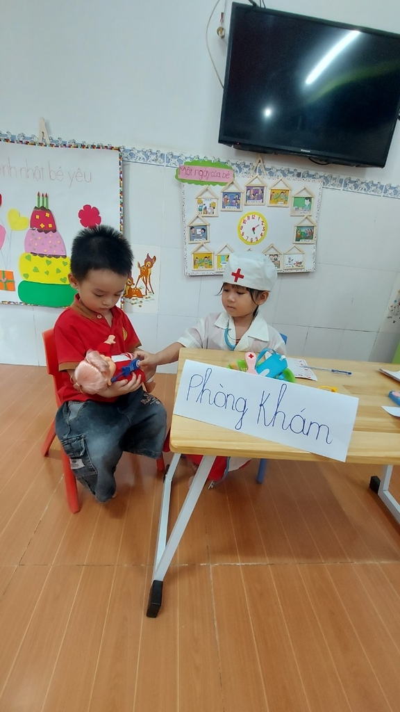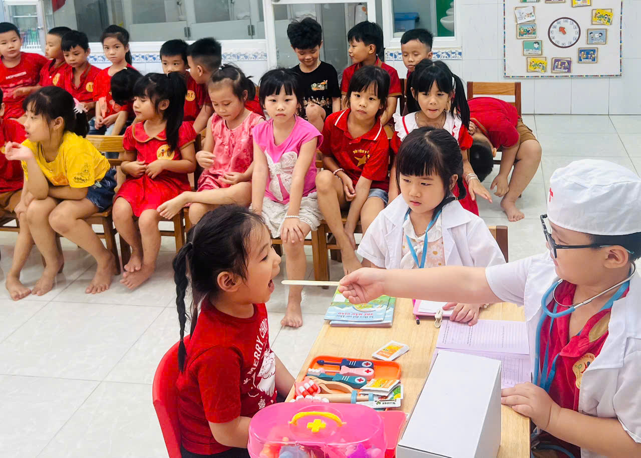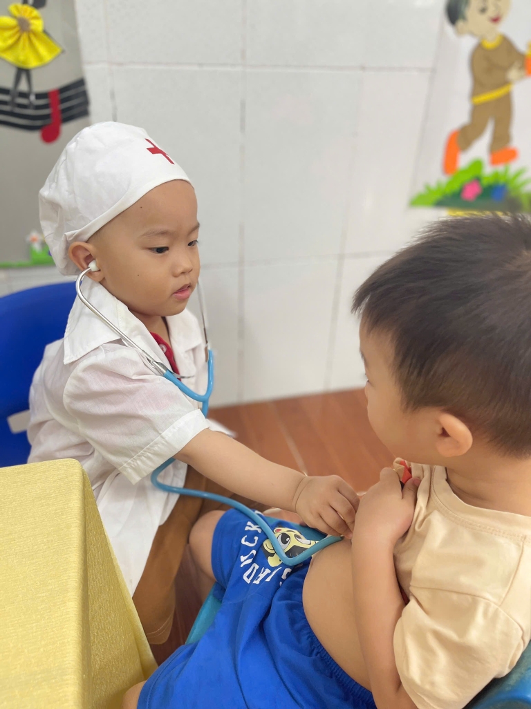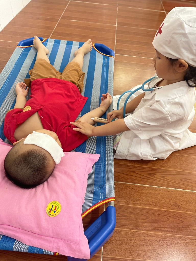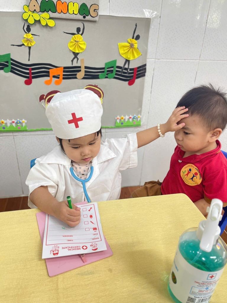 Để tỏ lòng biết ơn và kính trọng tới các bác sĩ hôm nay các bạn nhỏ Trường Mầm non Thanh Bình đã đóng vai thành những y, bác sĩ để tìm hiểu và cùng thử làm những công việc như khám chữa bệnh cho mọi người