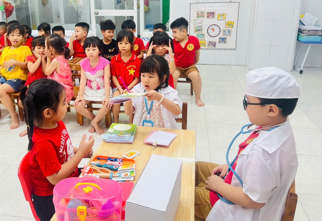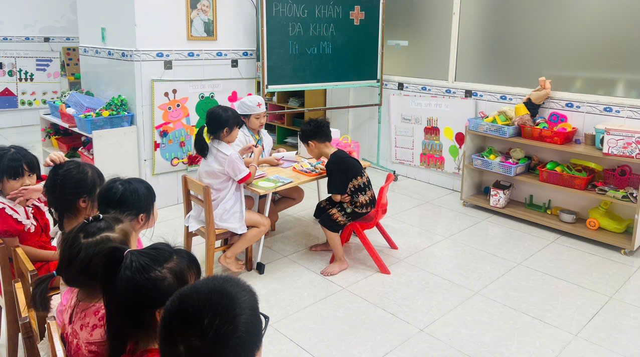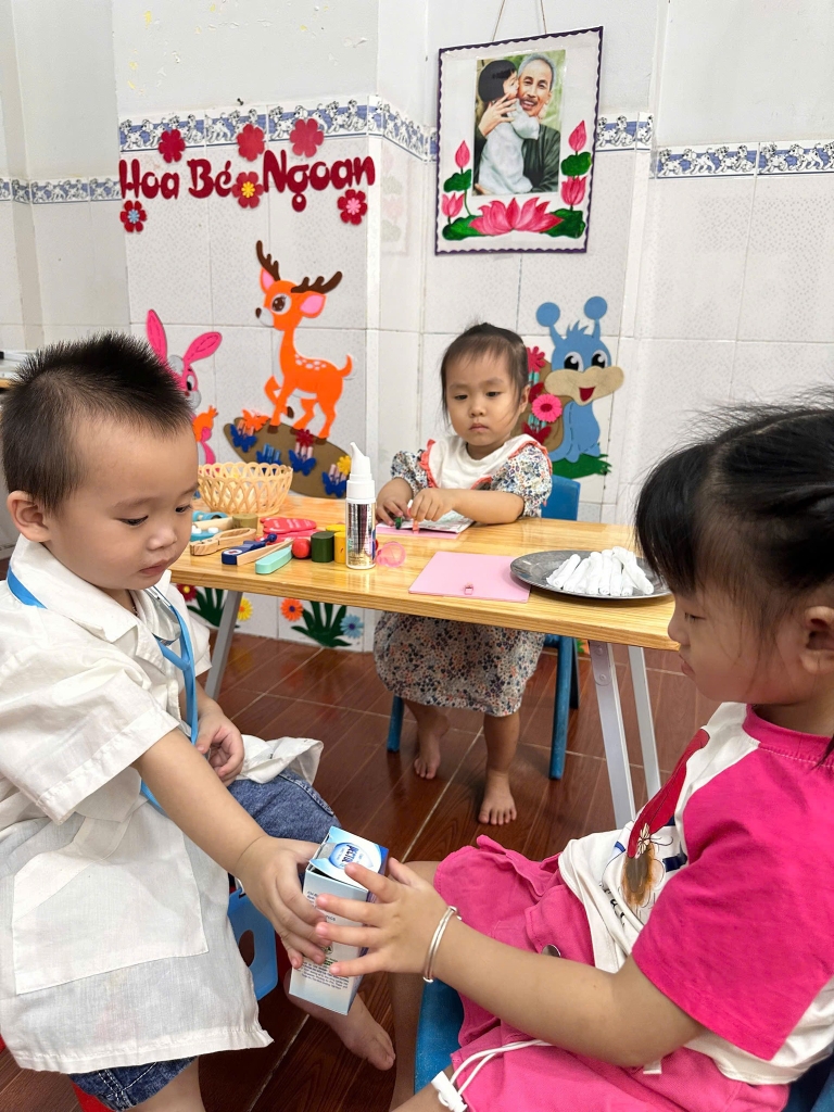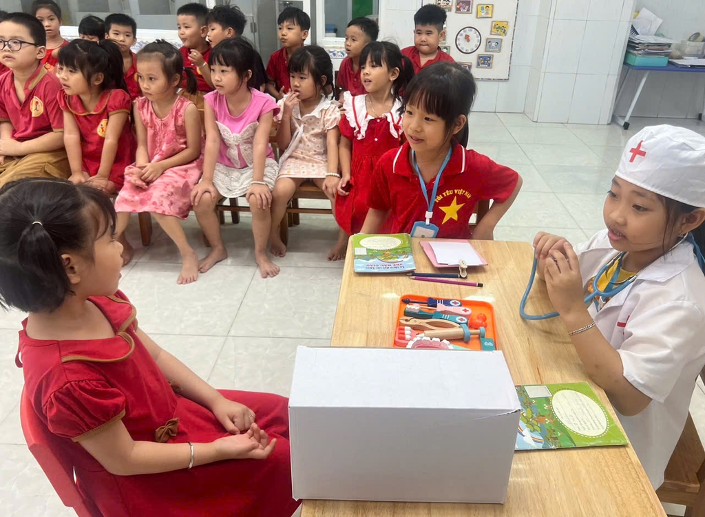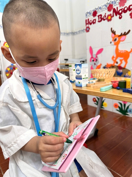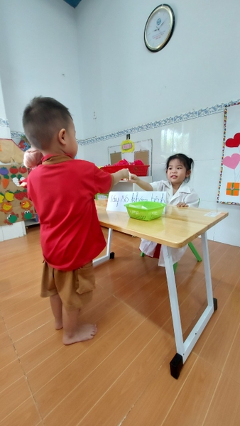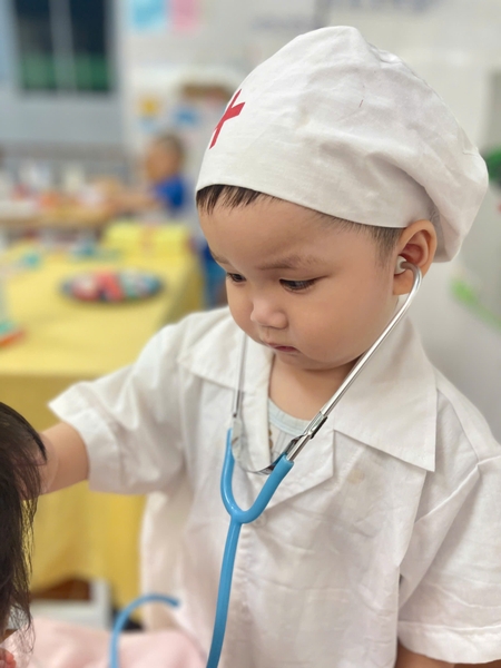 Để tỏ lòng biết ơn và kính trọng tới các bác sĩ hôm nay các bạn nhỏ Trường Mầm non Thanh Bình đã đóng vai thành những y, bác sĩ để tìm hiểu và cùng thử làm những công việc như khám chữa bệnh cho mọi người