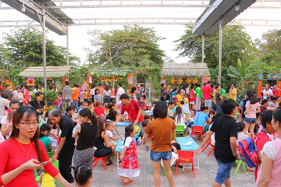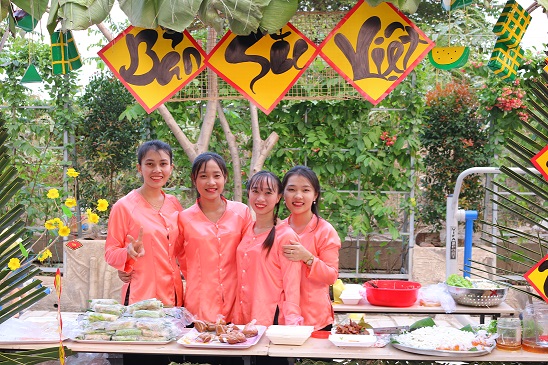 Với khu ẩm thực được bài trí đẹp mộc mạc, nơi bán các món quà quê dân dã như bánh đúc, bánh ít, ngô, khoai, dưa hấu, nông sản sạch, có nguồn gốc xuất xứ, đảm bảo vệ sinh an toàn thực phẩm phục vụ ngày Tết và nhiều điểm chụp hình lưu niệm tại các không gian của Hội Xuân từ mái cổng vòm bằng rơm, tre nứa, các dãy nhà mái lá đẹp tựa bức tranh chợ quê, và cả những sắc màu rực rỡ của hoa mai, hoa đào, mực tàu giấy đỏ…